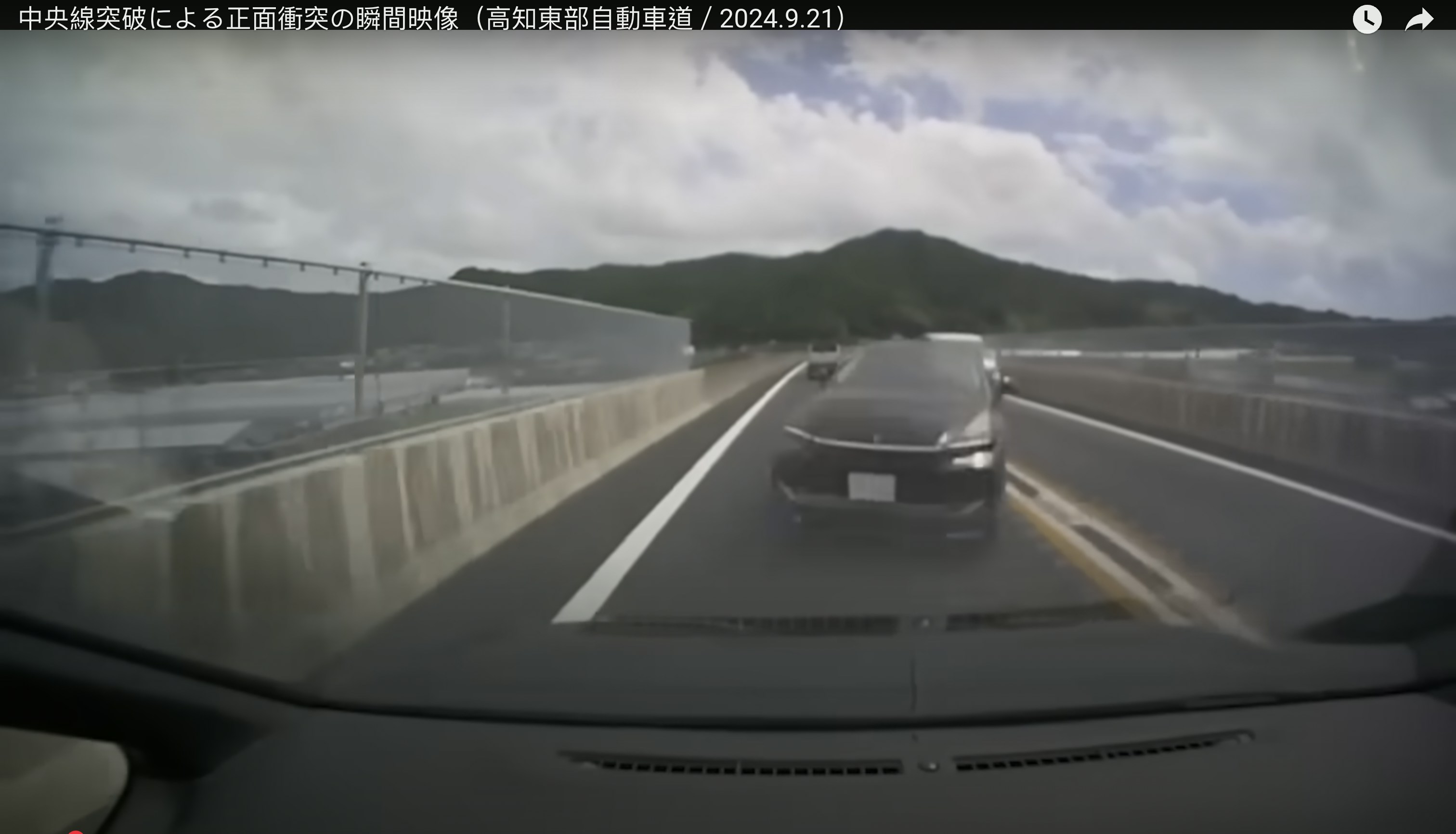 綜合日本媒體報道,日本9月發生一宗駭人車禍。一名男子在公路上開啟自動駕駛模式後,居然鬆開軚盤在車內換衫換鞋,車輛其後突然失控,越線撞向一架迎面而來的私家車,導致對方車上一名1歲男嬰傷重不治。圖為被撞車輛行車紀錄儀紀錄車輛被撞後的畫面。(Youtube@yanagiharamika)