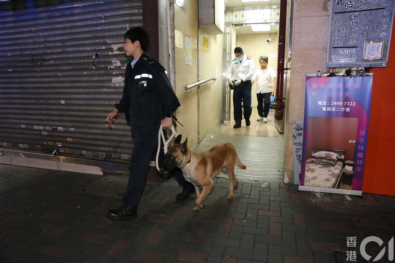 警員帶同警犬到場。(陳永武攝)