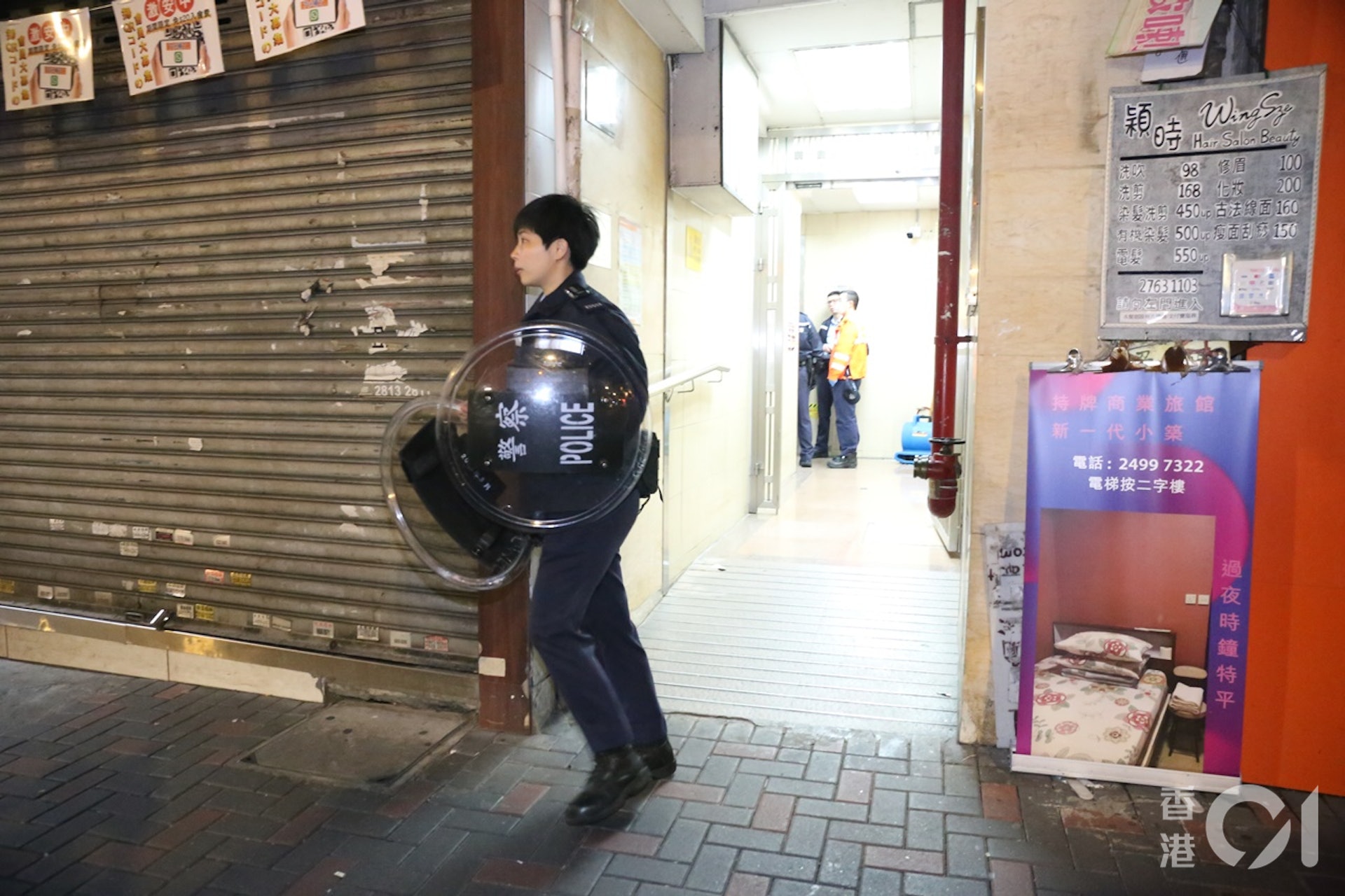 警員手持盾牌戒備。(陳永武攝)