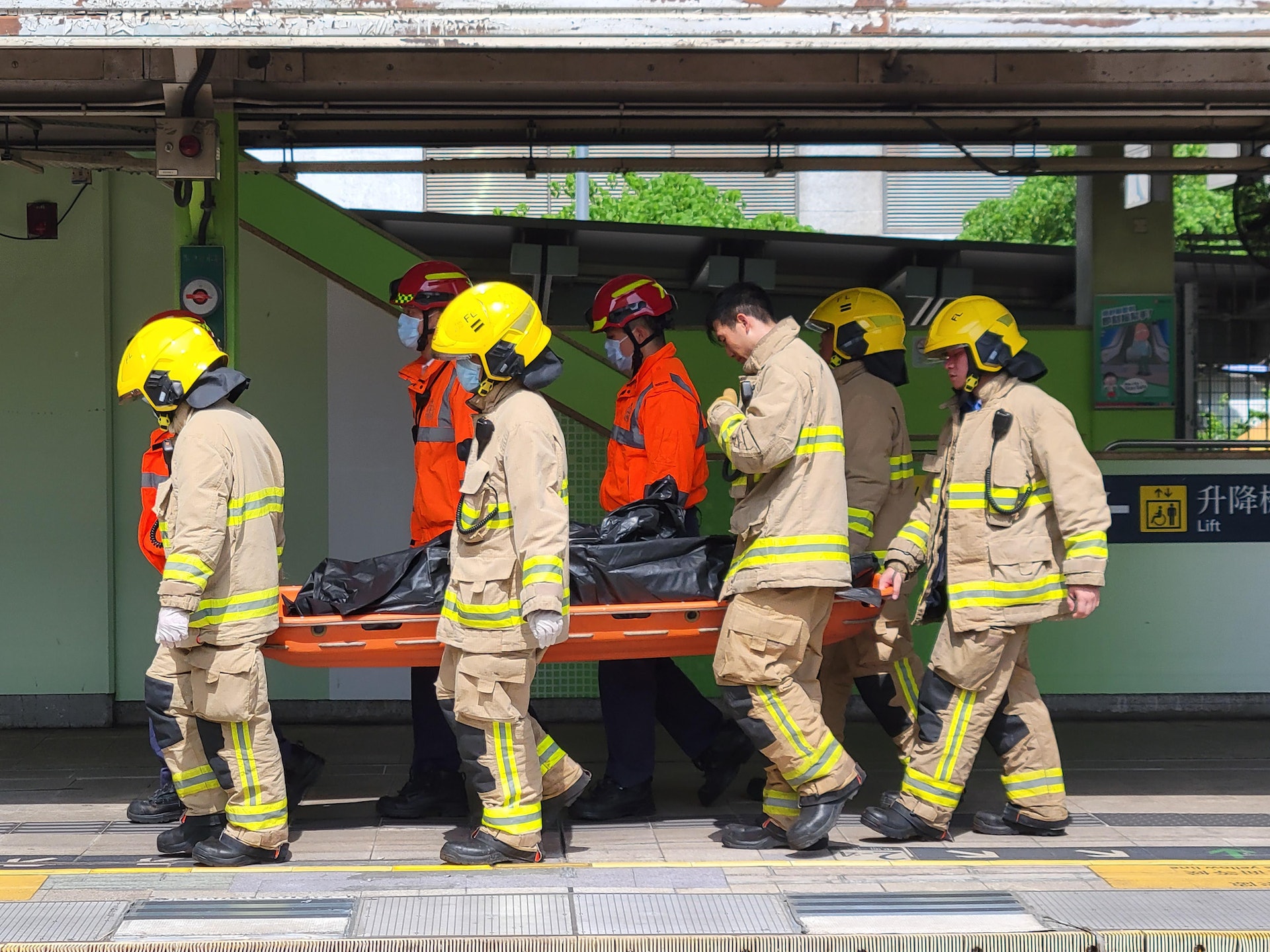 事故發生於通往金鐘方向的路段,消防人員接報到場後,將死者遺體以黑色袋移離現場,並在路軌附近撿拾其隨身物品。