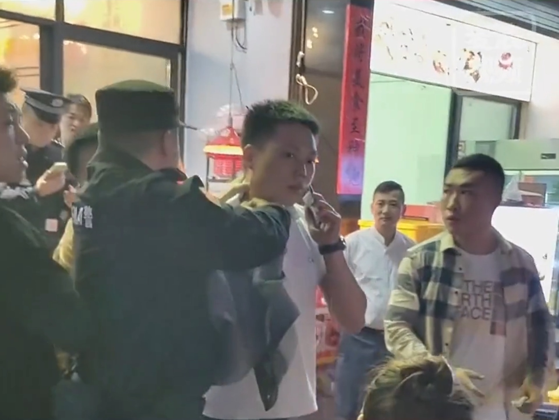 另一名女子亦遭重擊,頭部受創鮮血直流;即使警方趕到現場,涉事男子仍情緒激動,不斷叫囂並試圖拉扯他人。(點擊圖片可放大查看相關影片截圖)