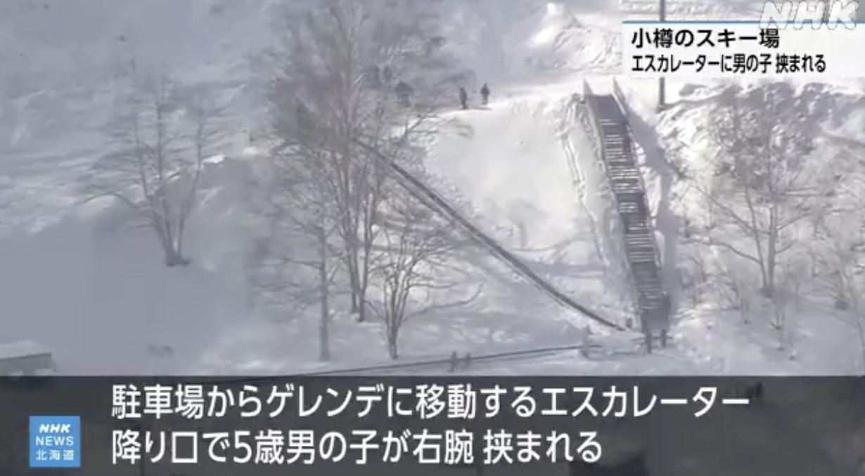 日本北海道再傳滑雪場意外。一名5歲男童於12月28日在小樽市朝里川溫泉滑雪場發生嚴重事故,於戶外電動輸送梯被夾傷手臂,獲救時已失去知覺,送院搶救後證實不治。