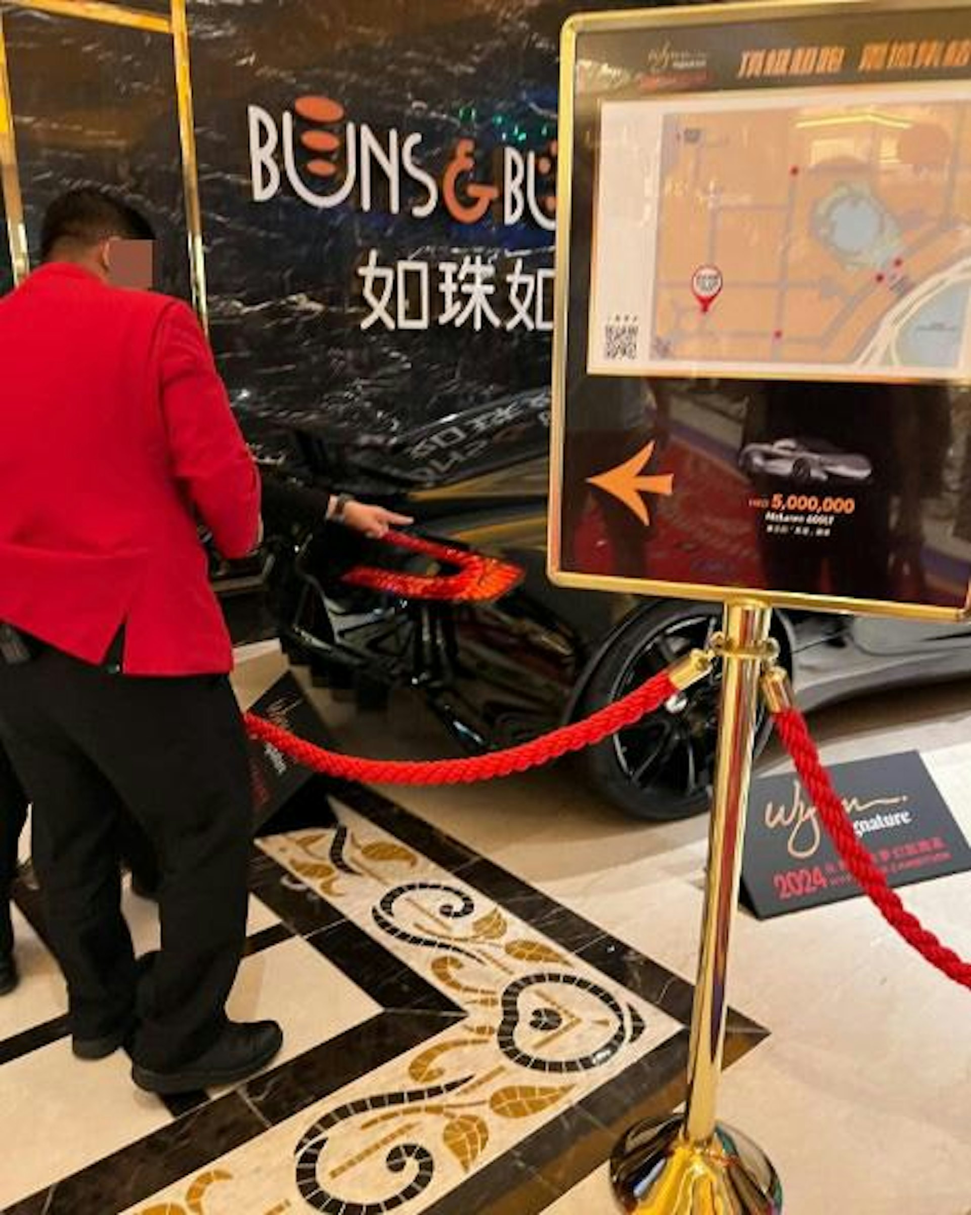 事發地點為澳門永利的展覽廳,正舉行「2024永利臻典夢幻超跑展」,展期由2024年8月1日至10月13日。根據官方資料,展覽雲集30輛世界級超跑,總值逾15億港元,當中包括 Pagani Huayra R、Aston Martin V12 Speedster 及全球限量9部的 Lamborghini Veneno Roadster 等珍稀車款。