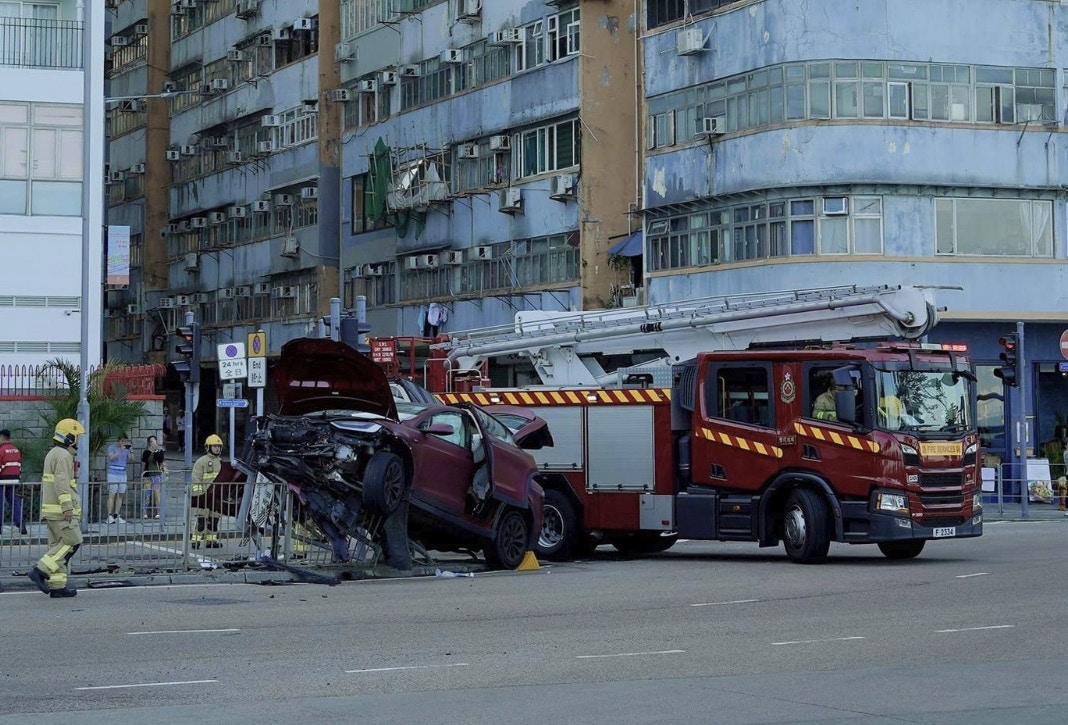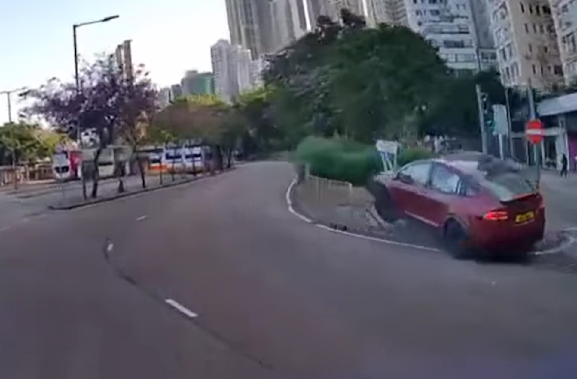 假日駕駛需格外留神。網上近日流傳一段車Cam片段,拍攝到今早(19日)約9時,一輛紅色 Tesla 電動私家車於堅尼地城新海旁街行駛期間發生交通意外,車輛在左轉入城西道時懷疑失控,撞向路壆鐵欄及路牌,造成車上多人受傷。
