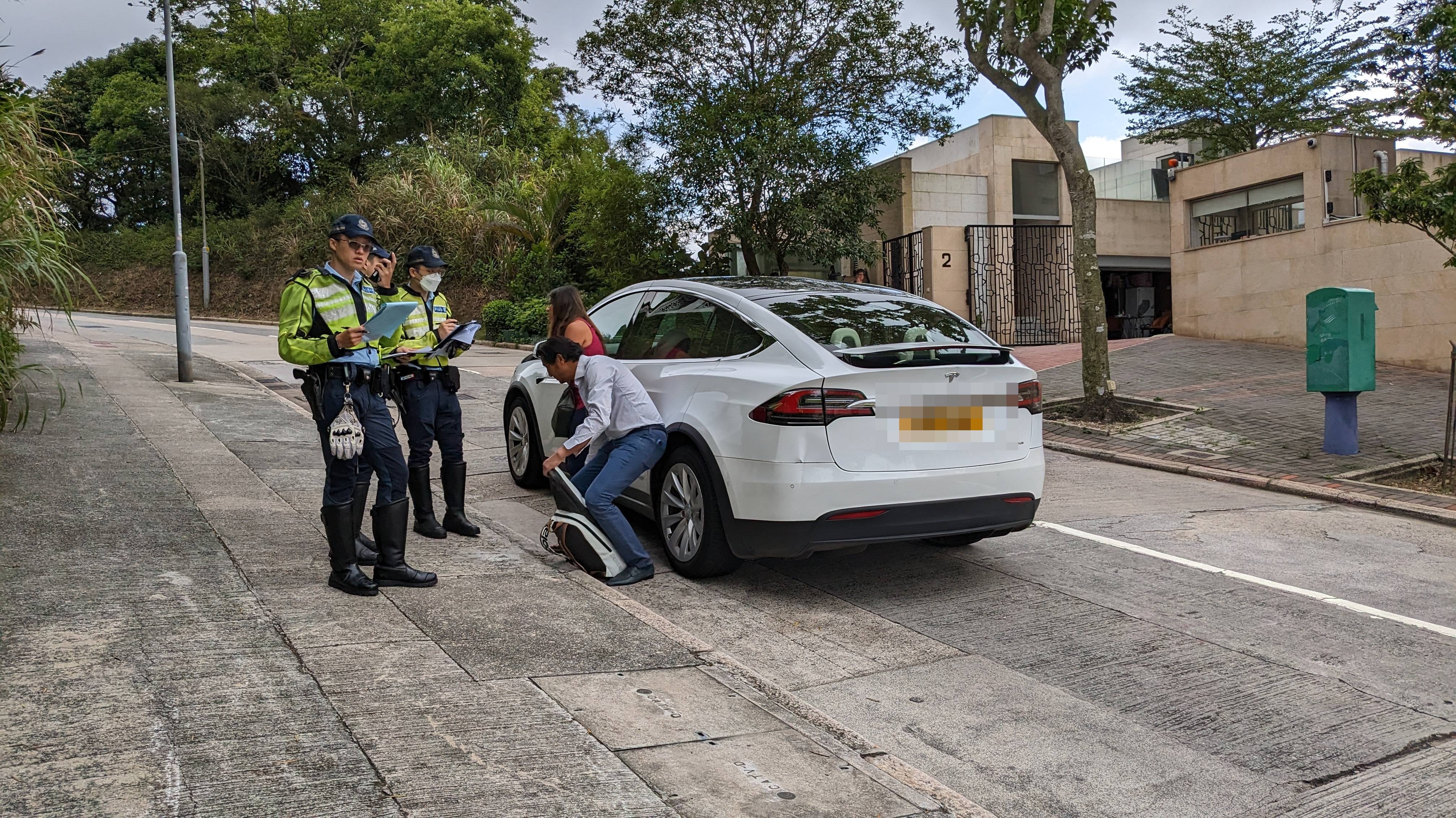 今日(4日)清晨7時42分,一輛Tesla電動車沿舊山頂道下山,駛至與白加道交界的行人過路處時,撞倒一名74歲、姓伍的男途人。傷者手肘及眼部受創,之後由救護車送往瑪麗醫院接受治療。 涉事電動車由一名41歲印度裔女子駕駛,她通過酒精呼氣測試;車上外籍男乘客亦無受傷。兩人事後留在現場協助警方調查。期間女司機情緒略顯激動,一度拭淚稱:「I did nothing wrong(我沒有做錯)。」在場警員隨即安撫她,並表示會就事件展開進一步調查。其後另有一名男子到場,協助處理車輛相關事宜。 傷者頭部及左眼角受傷。 傷者頭部受創,左眼角亦有明顯傷勢。 女司機拭淚,哭說沒有做錯。(黃偉民攝) 女司機一邊抹淚,一邊哽咽表示自己並無過失。 女司機及男乘客(白衫)在場助查,另一名男子(右)到場協助處理車務。(黃偉民攝) 女司機與身穿白衫的男乘客留在現場配合調查;其後另一名男子(右)趕到,協助跟進車輛相關事宜。 女司機與男乘客事後留在現場,配合警方調查。