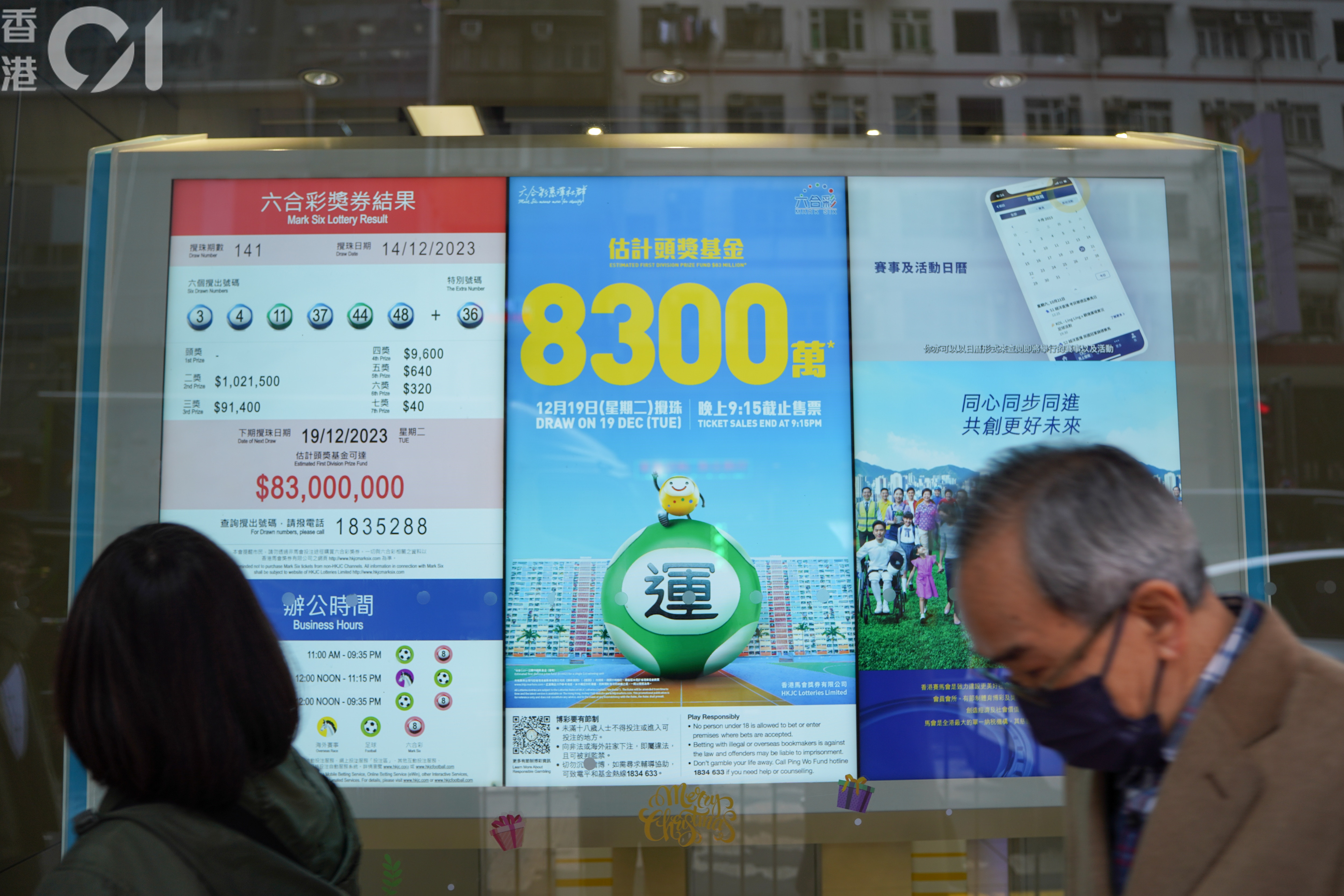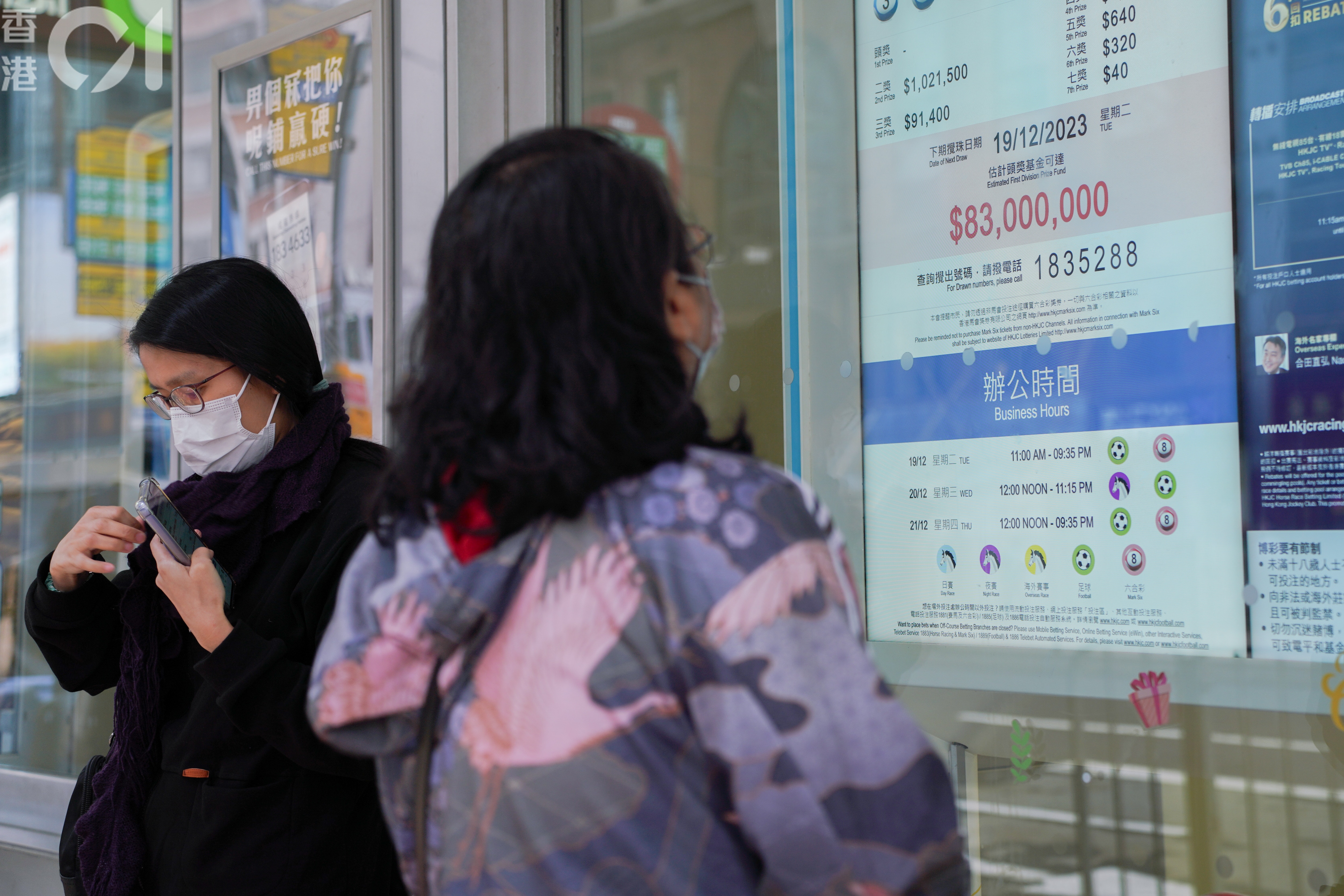 上周二(12月19日)進行的六合彩攪珠,頭獎獎金高達8,300萬元,吸引不少人投注試試運氣。(黃浩謙攝)
